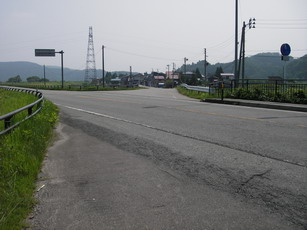 左写真、旧道を走ってきて、ココ、下蔵岡で47号線に戻る。画面中央が旧道。