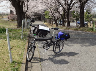 左写真、今回のスタートポイント。小山市の扶桑水処理センター前である。満開の染井吉野が迎えてくれた。