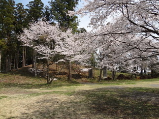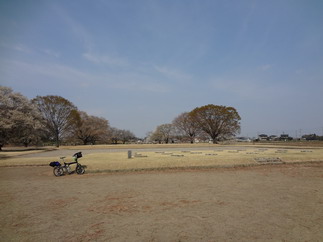 左写真、摩利支天塚古墳。県内最大級の前方後円墳だとのこと。桜が清楚に咲き誇っていた。
