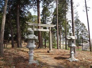 中写真、後円部の墳頂には、摩利支天社が祀られている。