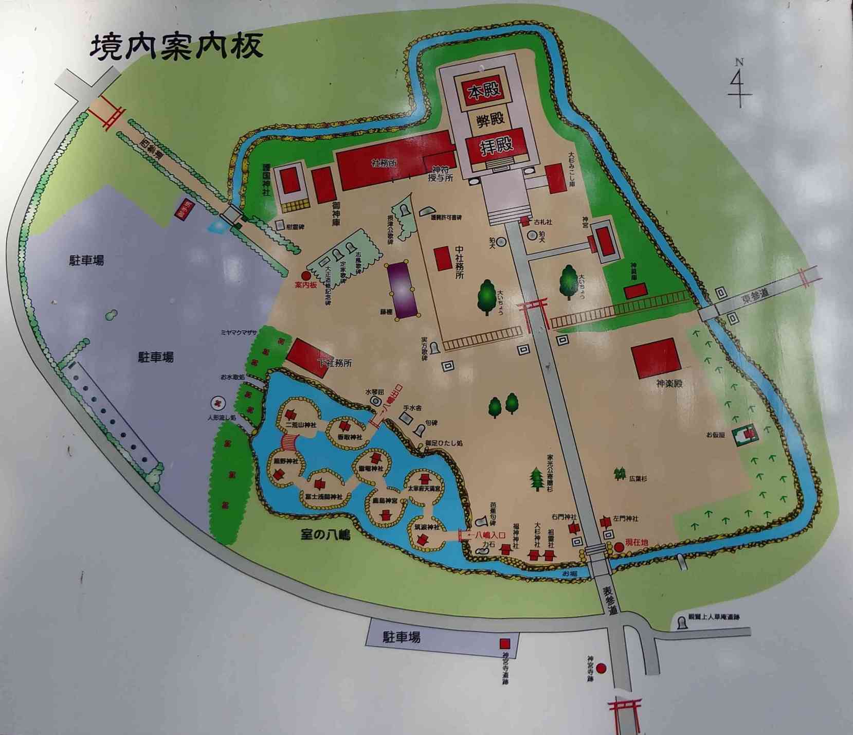 また、『下野風土記』には、”元禄期、室八嶋大明神の右の池に八つの小島があり、「八嶋」と呼ばれ、・・・”の記述がある。”