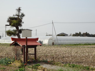 右写真、東参道から出て、北東方向に向かった。途中、簡素な馬頭観音が祀られていた。