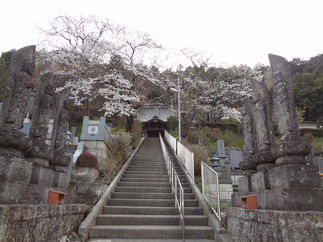 右写真、小さなお堂と見事な桜。前方の森がが大神オオミワ神社・「室の八島」である。