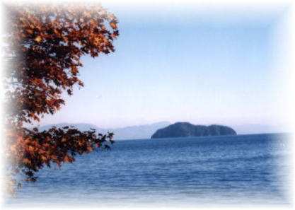二本松水泳場付近から竹生島を望む