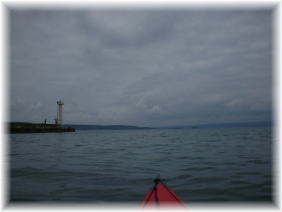 左写真、西へ漕ぐ。